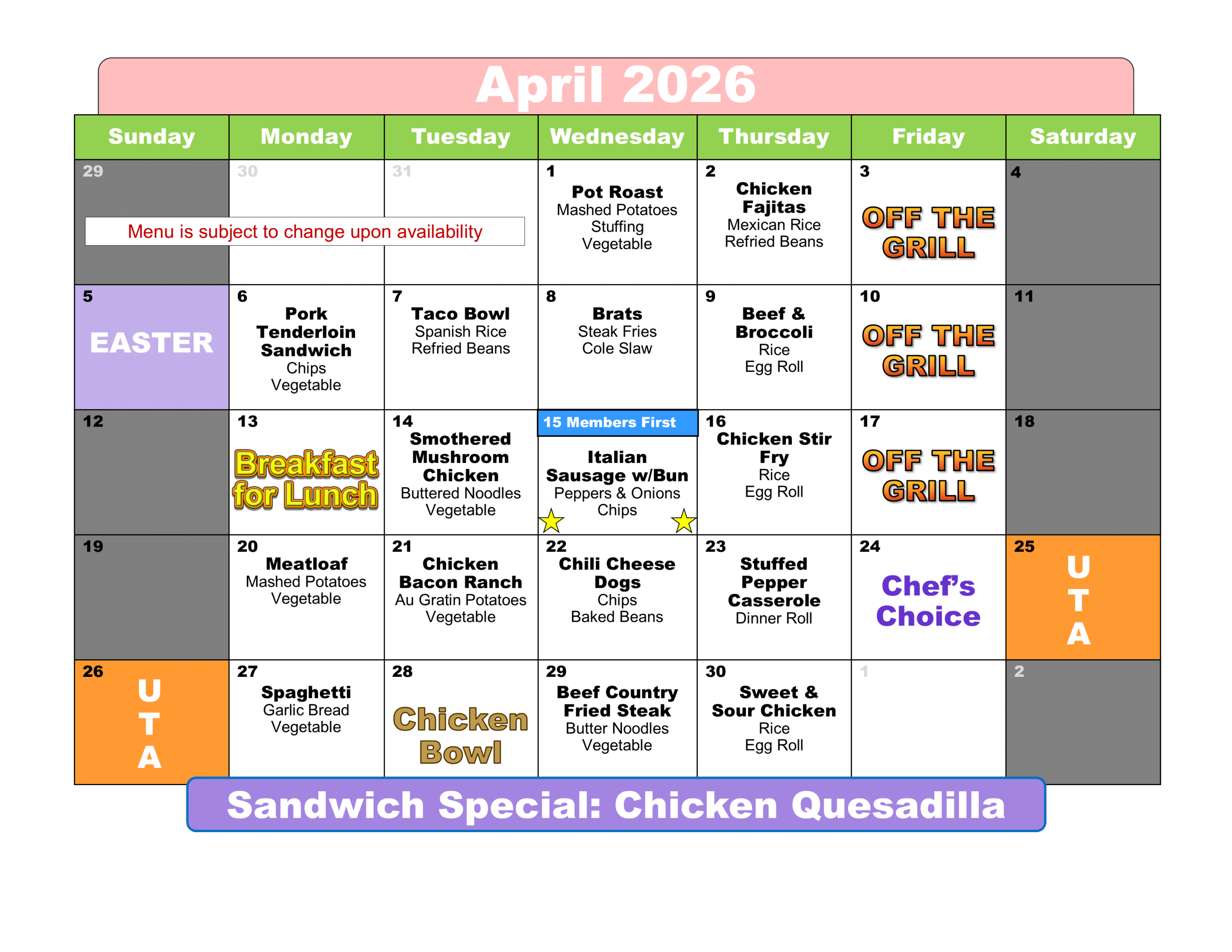 Wednesday Breakfast: 7:00 AM - 8:00AM