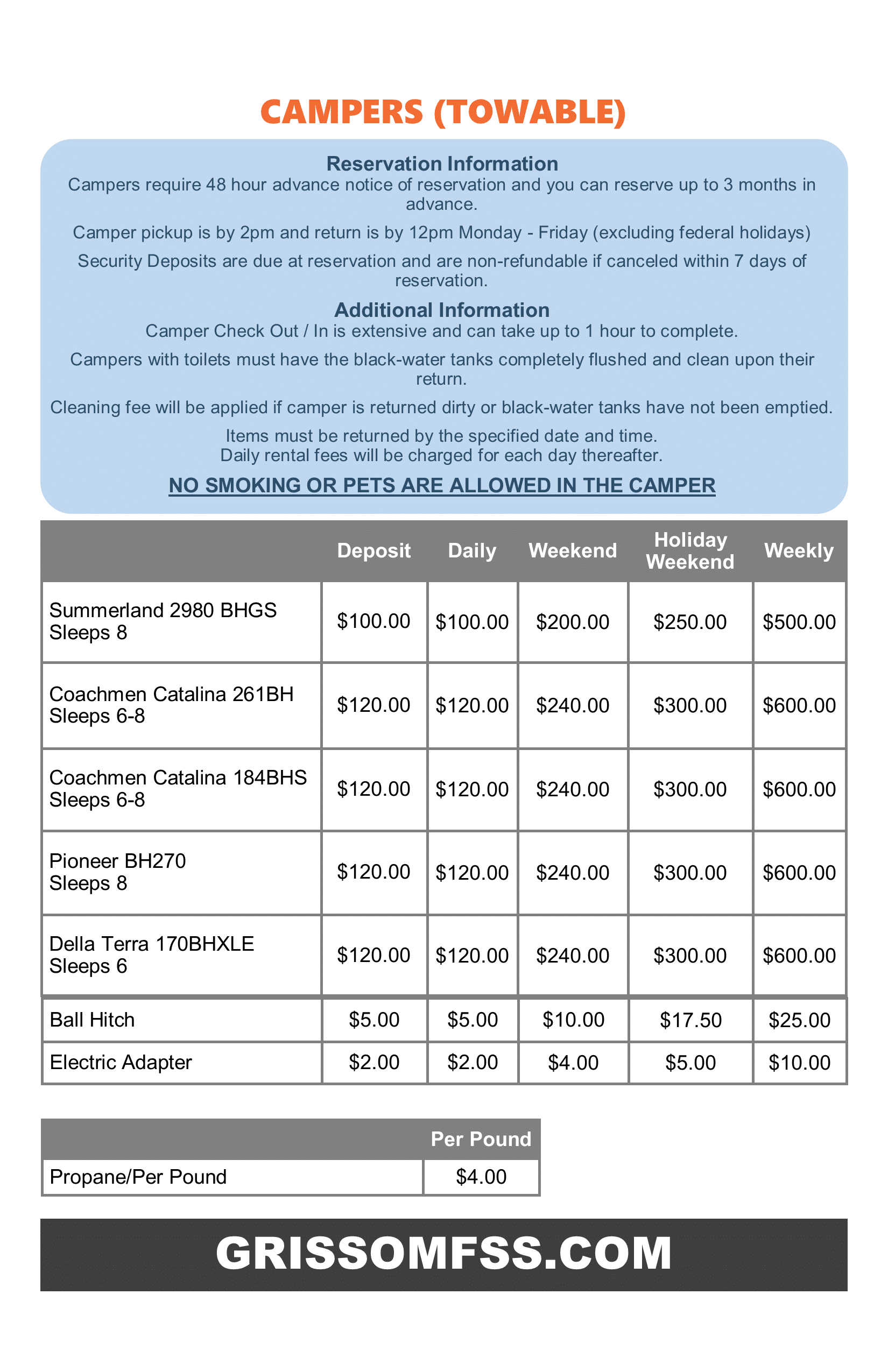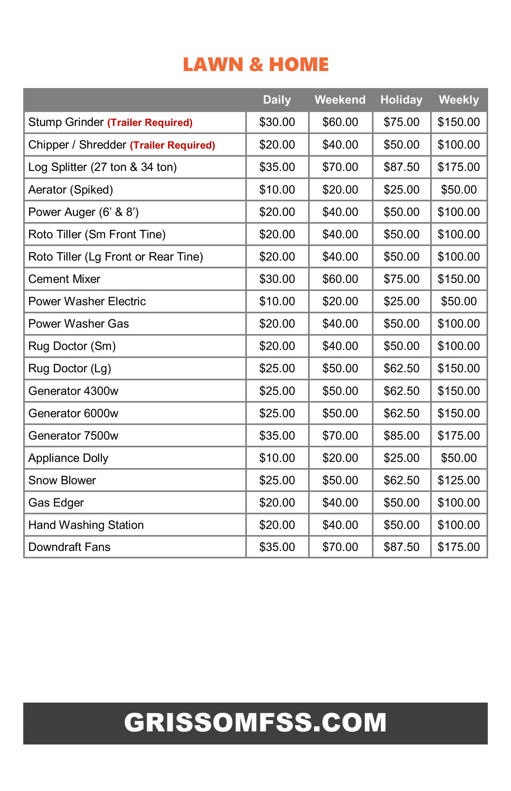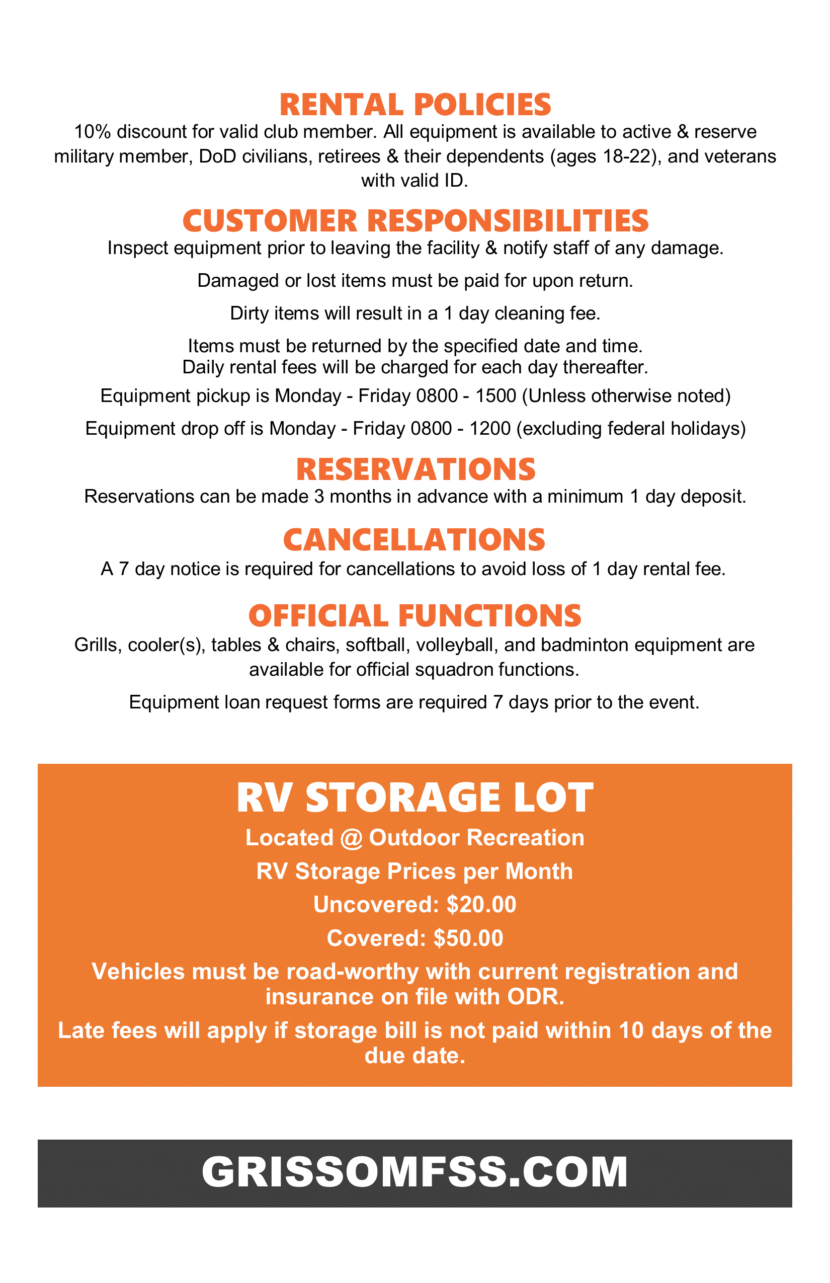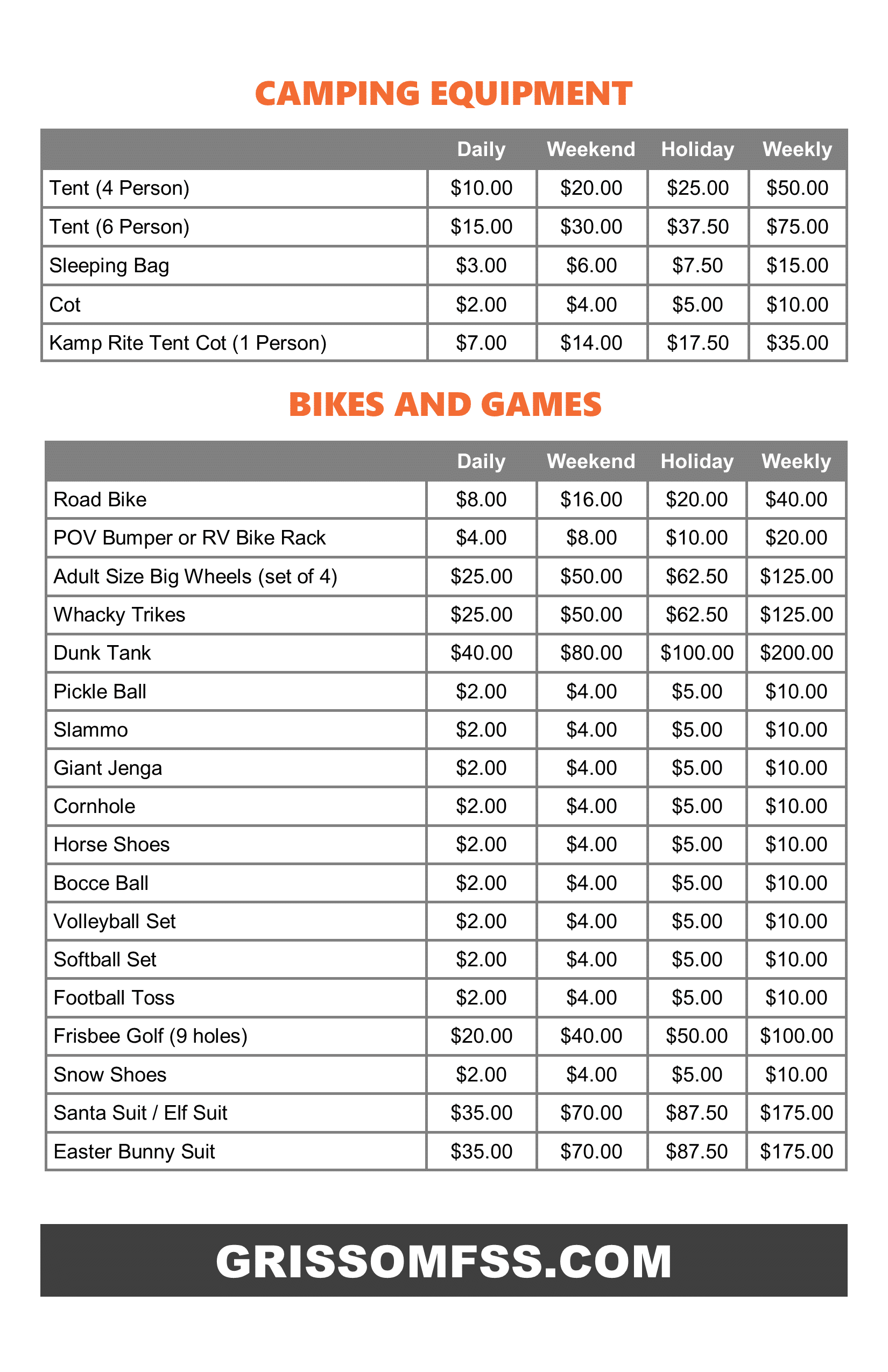 Grissom's FSS Outdoor Rec is a great option to get out and explore or to help with getting projects done around the house.